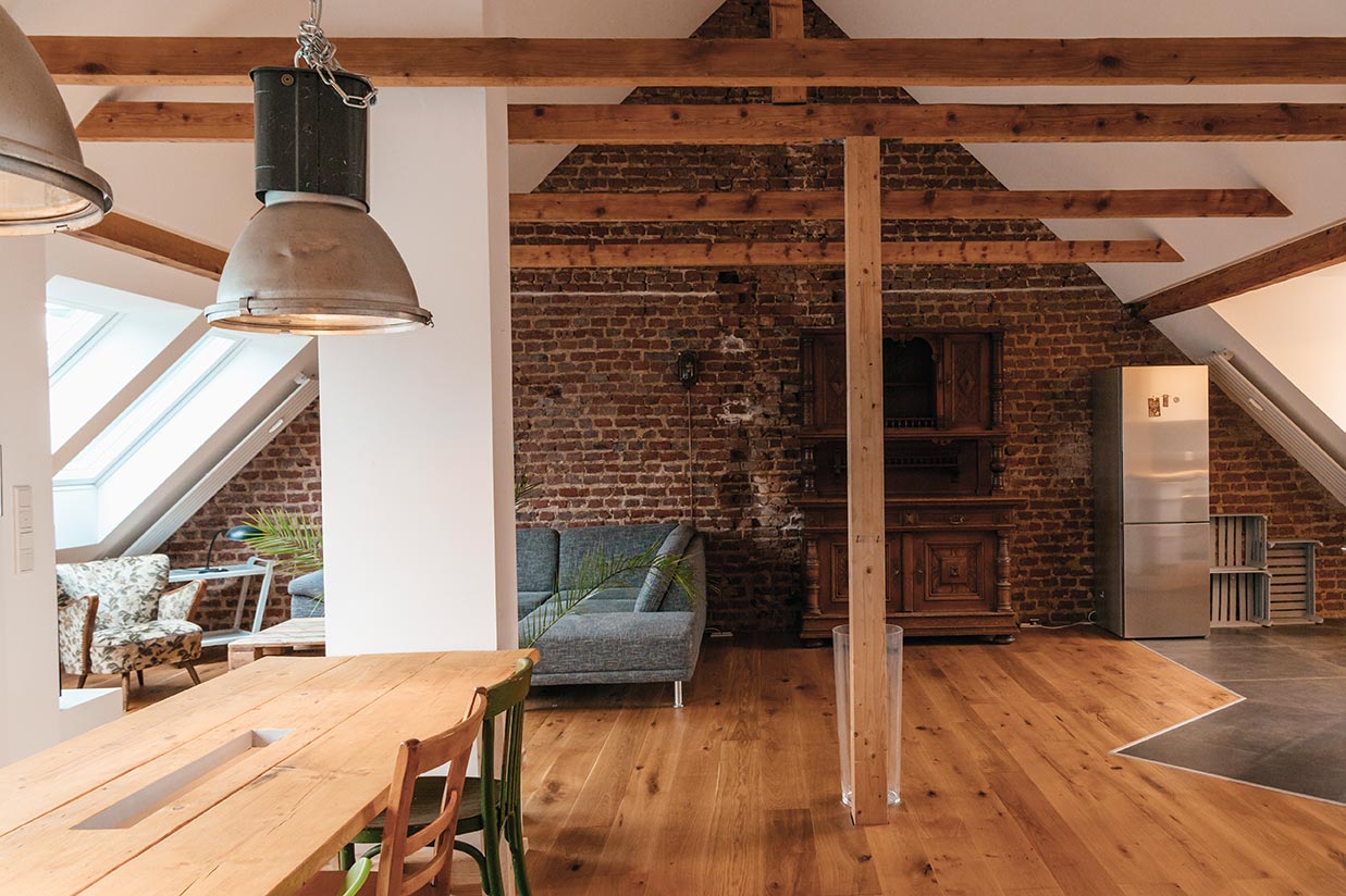 „Solche Böden bringen urbanes Flair in den Raum und sind gleichzeitig pflegeleicht und langlebig“, sagt Holz Gönner in Steinfurt .